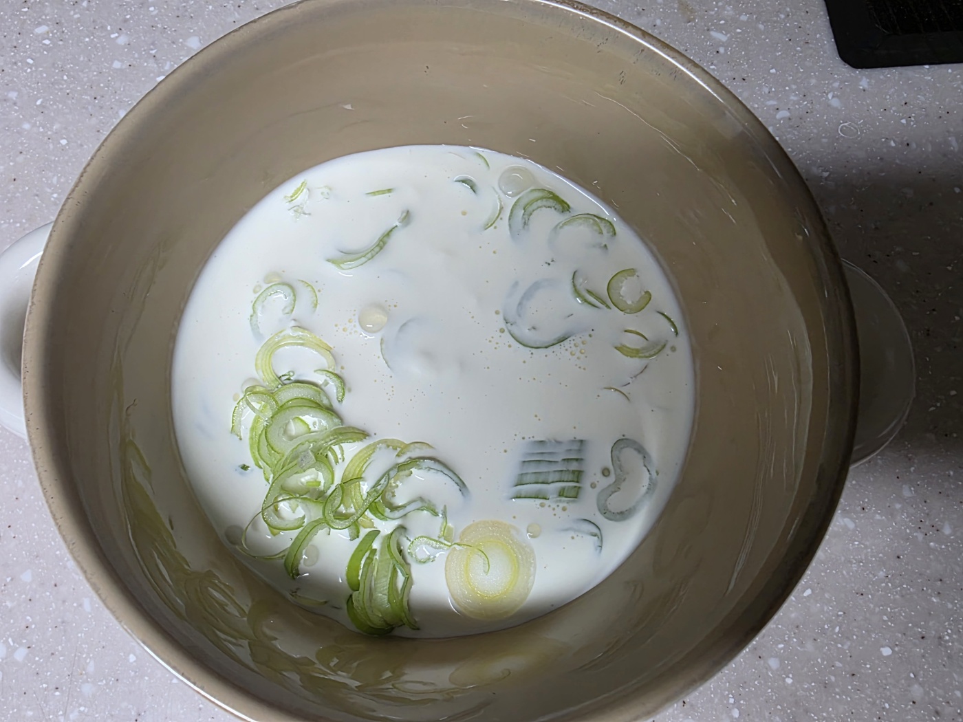 대파를 제외한 크림소스를 냉장 2일까지 보관할 수 있습니다. 사용 직전에 대파를 넣으세요.