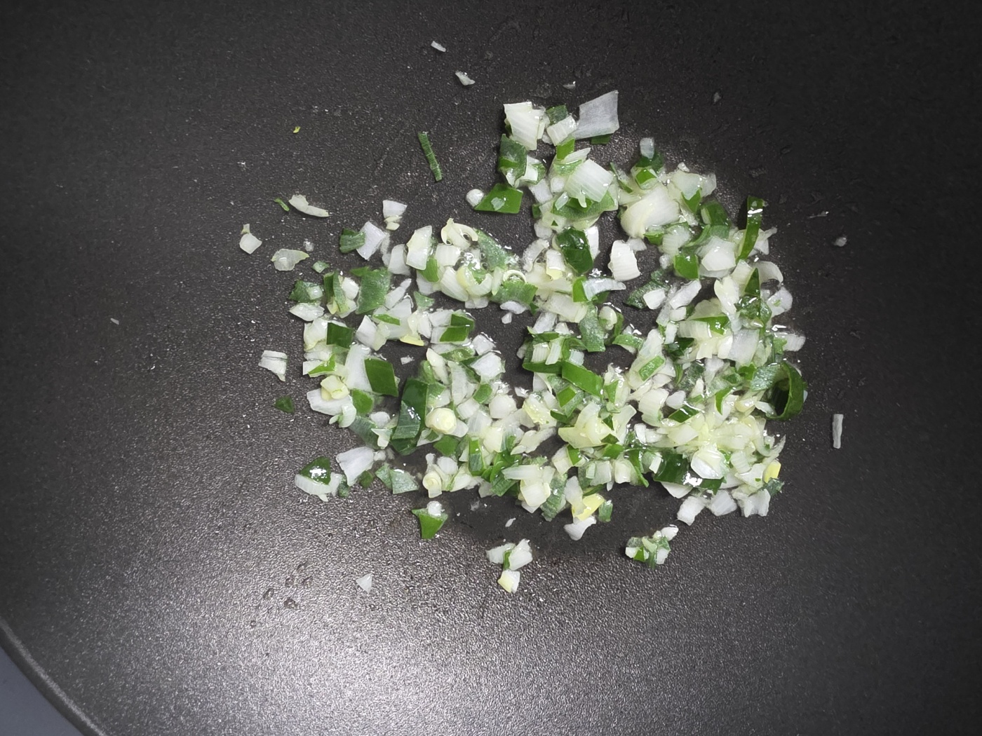 팬에 식용유를 두르고 대파를 먼저 볶아 파기름을 내줍니다.